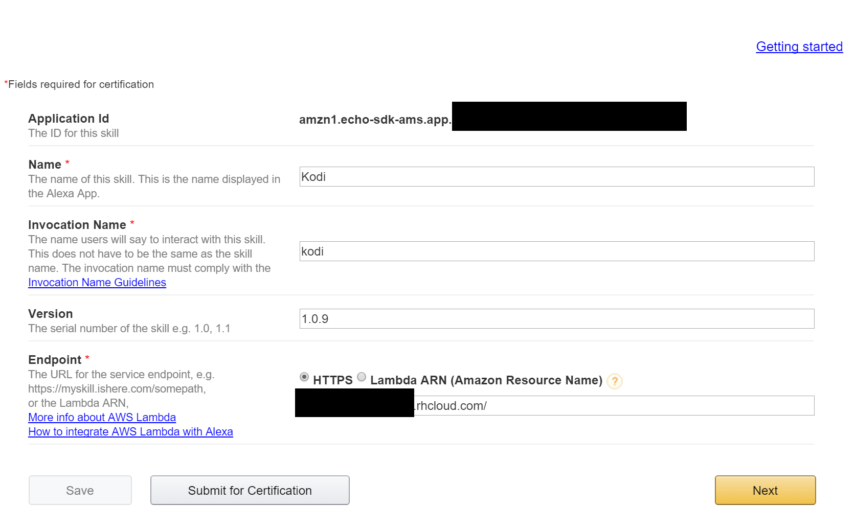 Once you've setup your server, you'll need to setup an Amazon developer account and start setting up a new Alexa skill.