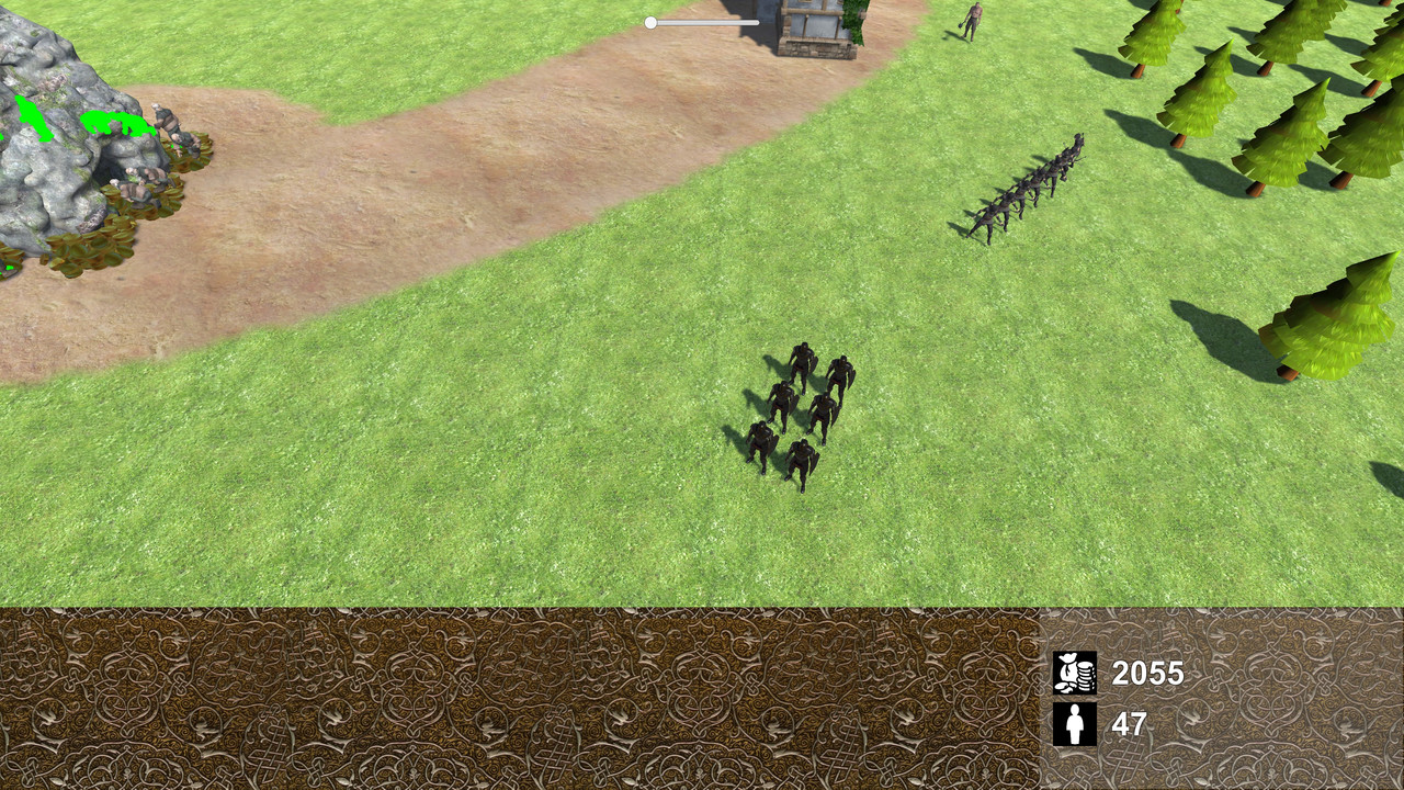 - coordinated movement with obstacle avoidance for groups of units. There are 3 formations: line, rectangle and column