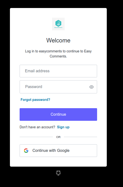 You will be redirected to an Auth0 Universal Login page where you can sign in with Google or else create an account with an email and password.