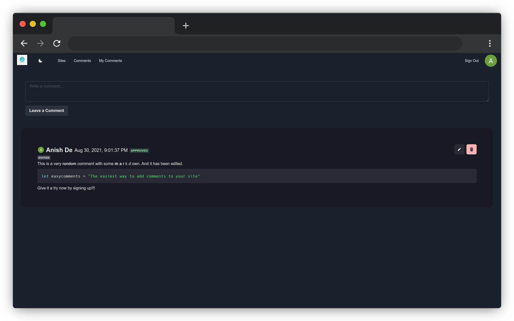 - Ability to edit and delete a comment