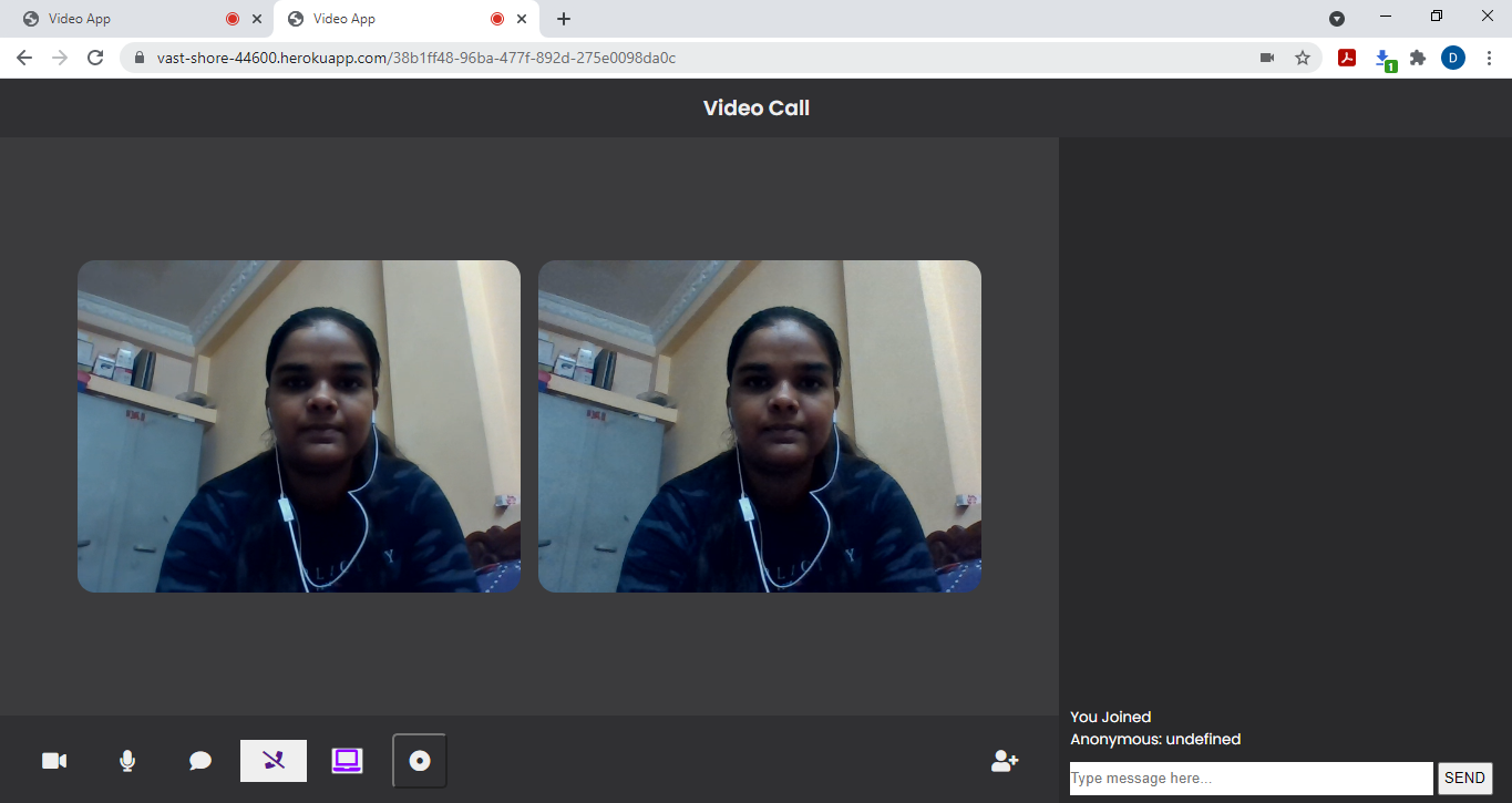 - Video Call Conference (Connection upto 6 users is possible but it works perfectly for upto 4 users, hangs a little bit for 6 users)