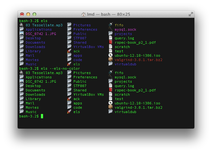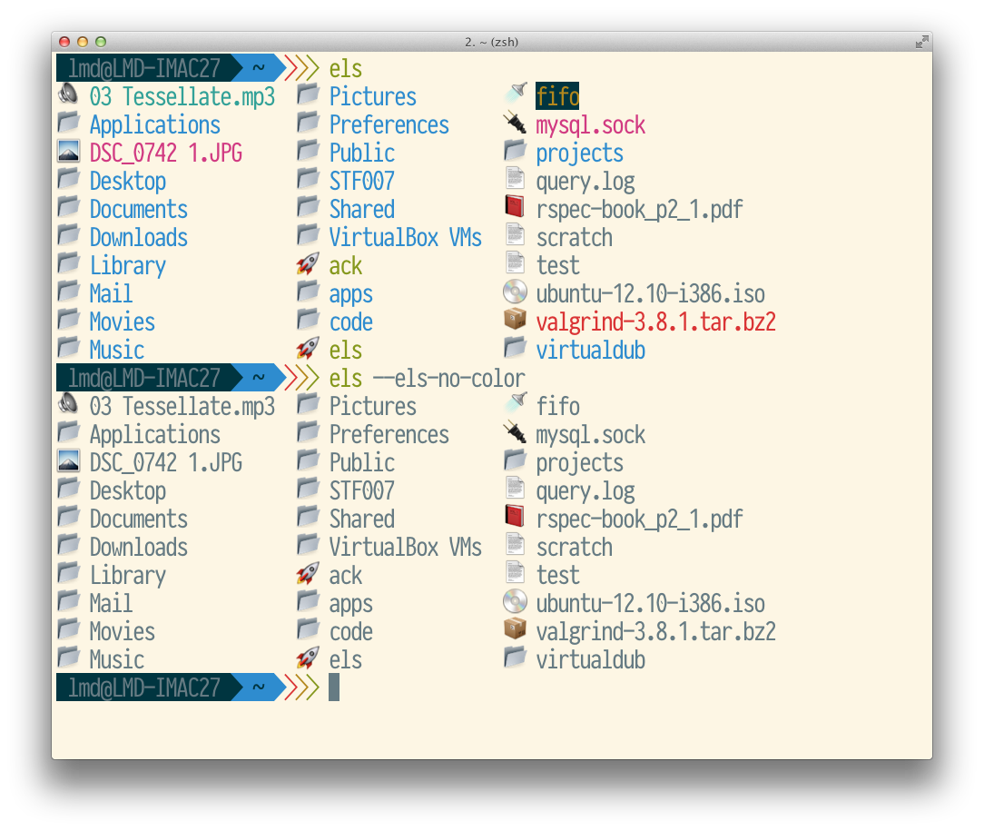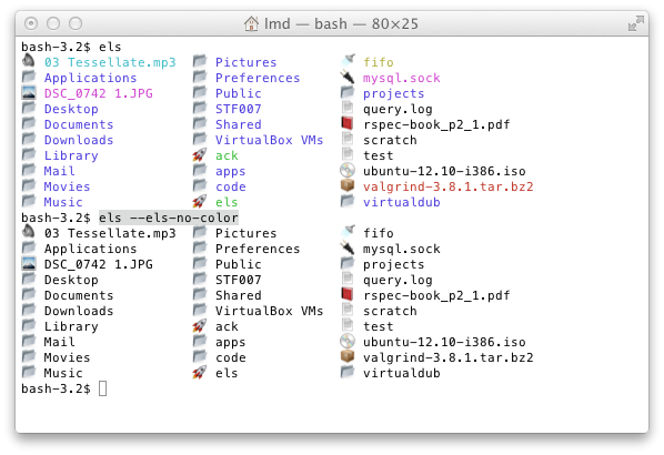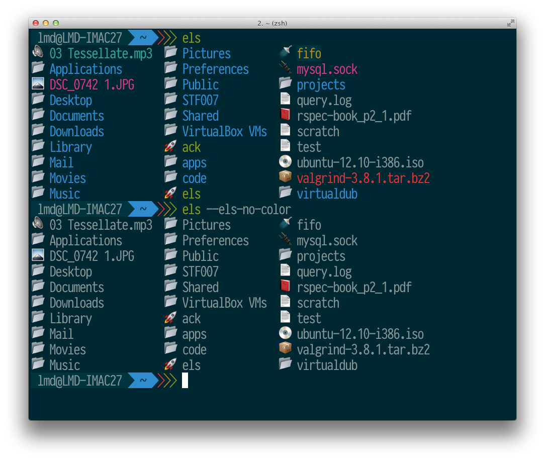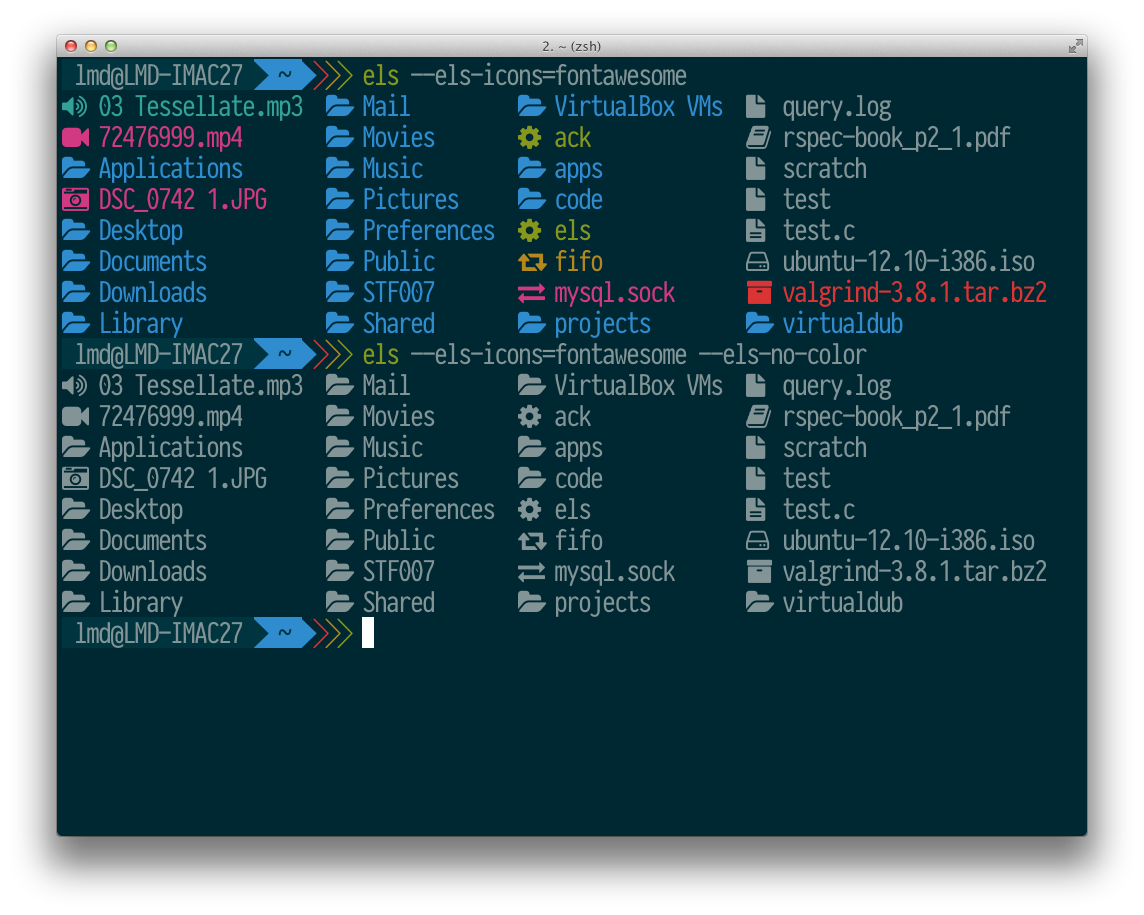 --els-no-colordisables the built in color handling.--els-icons=fontawesomeuses icons provided by FontAwesome