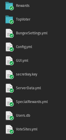 | VoteSites.yml | Defines vote sites — includes service name, delay, and rewards. Also contains “EverySiteReward” if configured. |