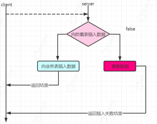 | 53 | +**注意防重表和业务表应该在同一个库中,这样就保证处在一个事务中,即使业务操作失败,也会把防重表的数据回滚。保证了数据的一致性。** |