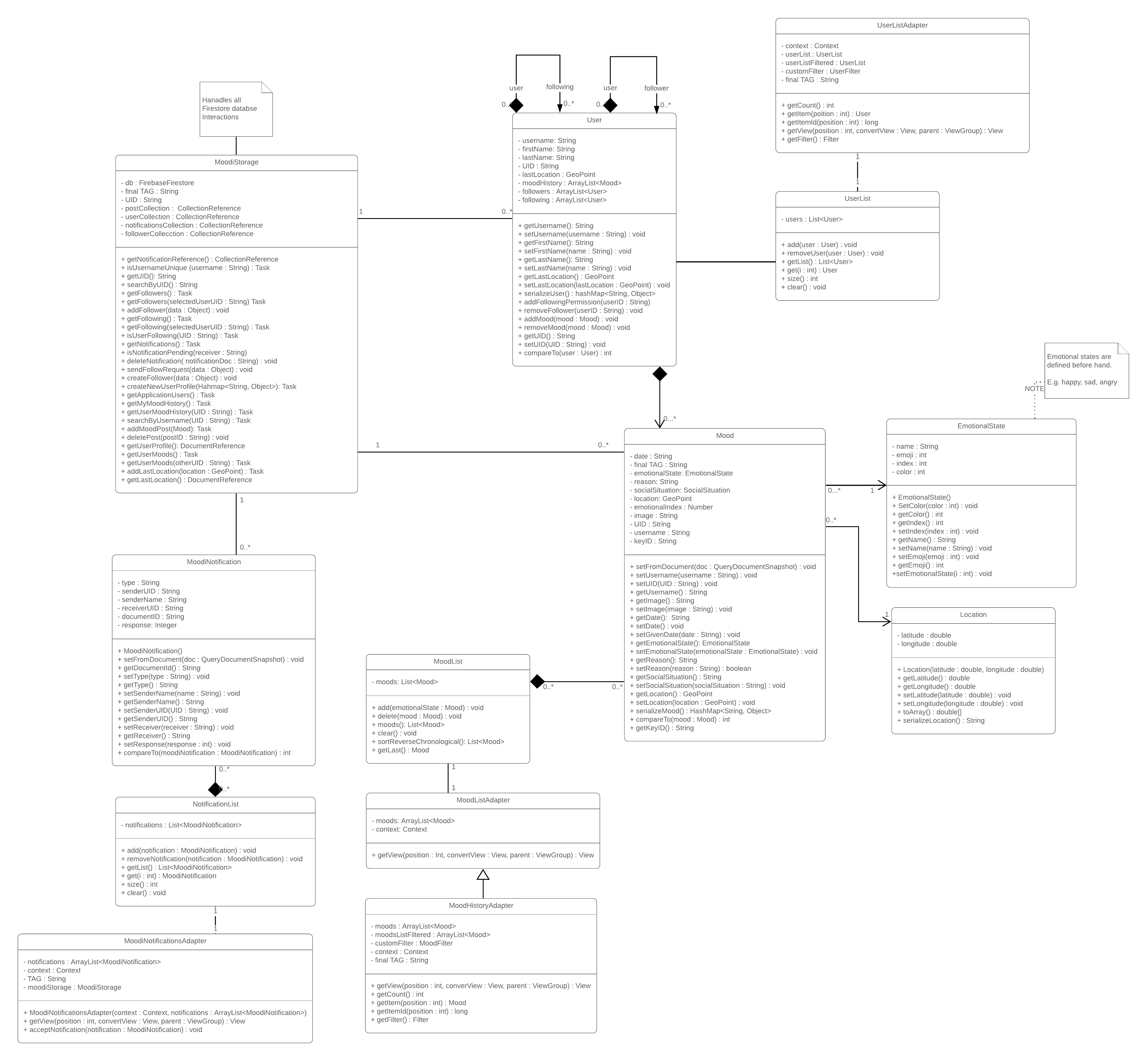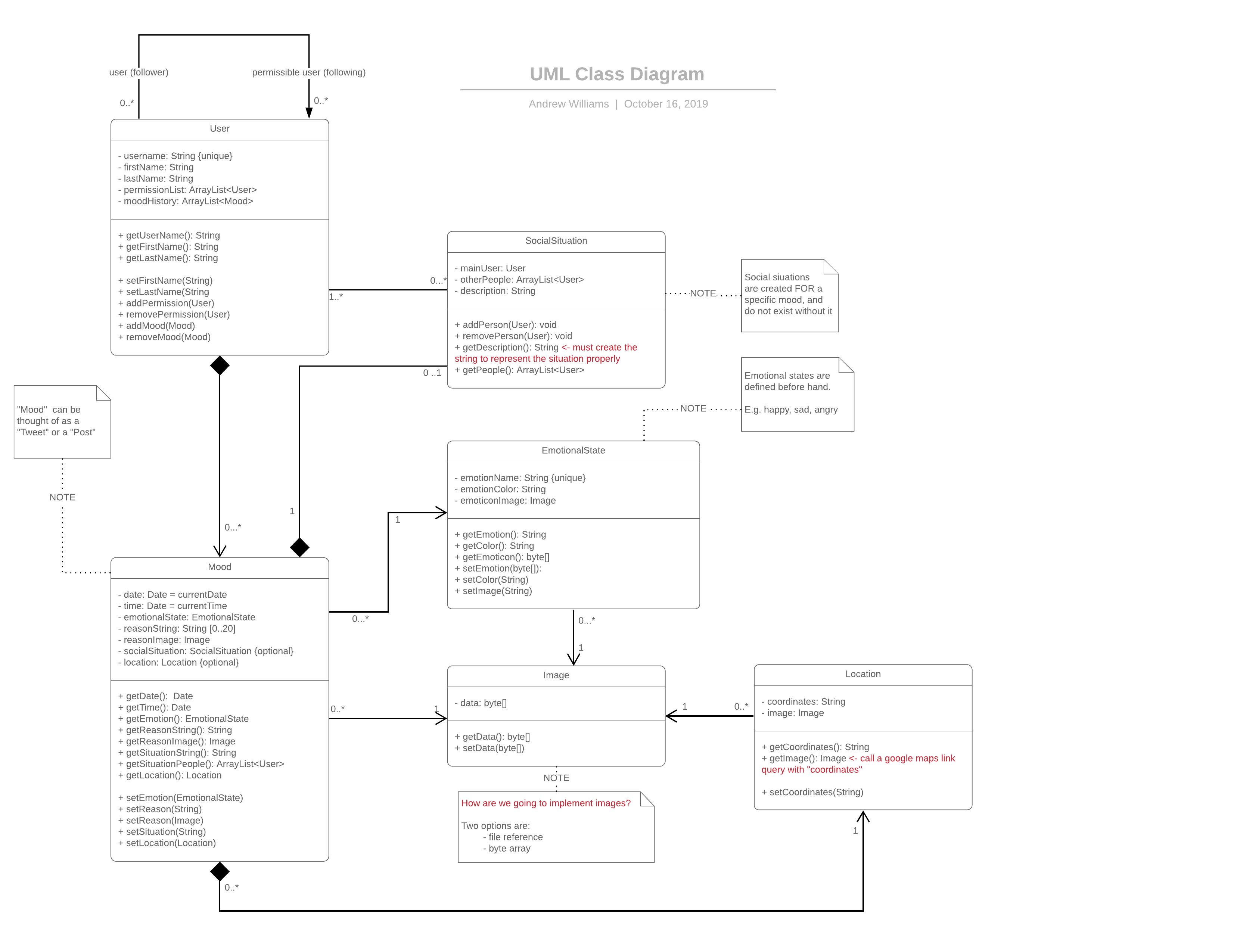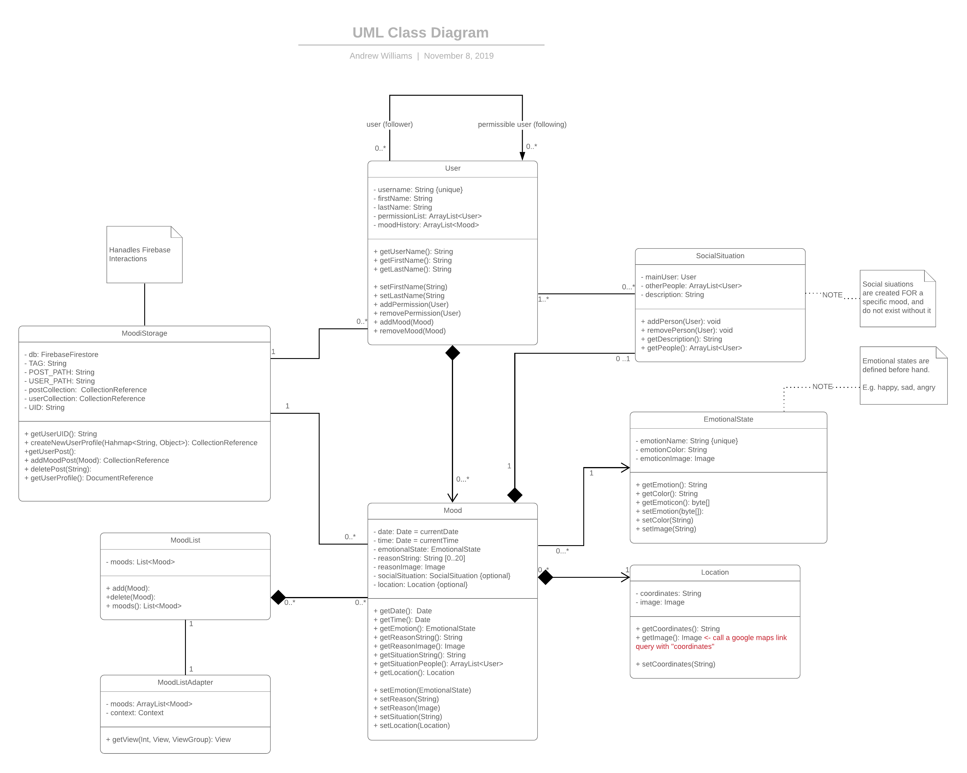 Class descriptions can be found in the glossary, or in notes provided in the UML.