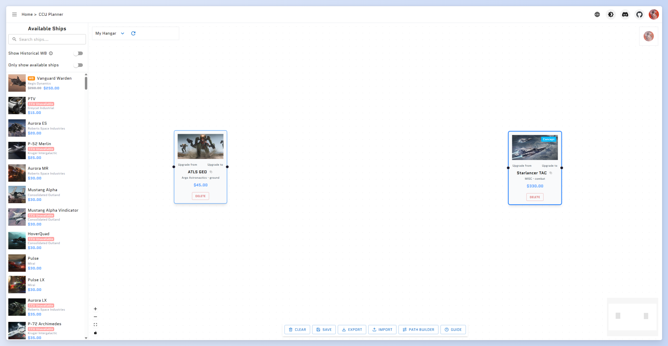 • Plan your upgrade path using pledges from your hangar