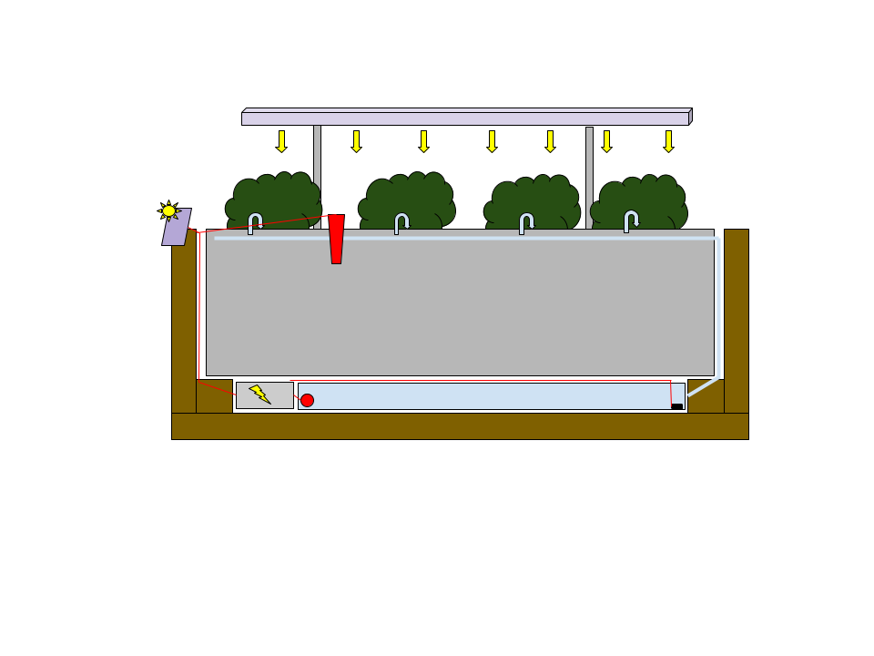 This is an attempt to provide herbs in a flower box with water and light in an automated way.