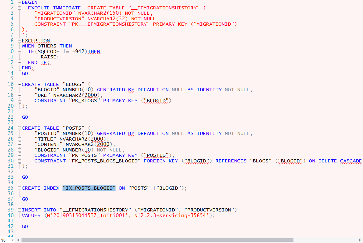 是否支持CodeFirst,以下是生成的sql语句,无法在ORACLE中执行