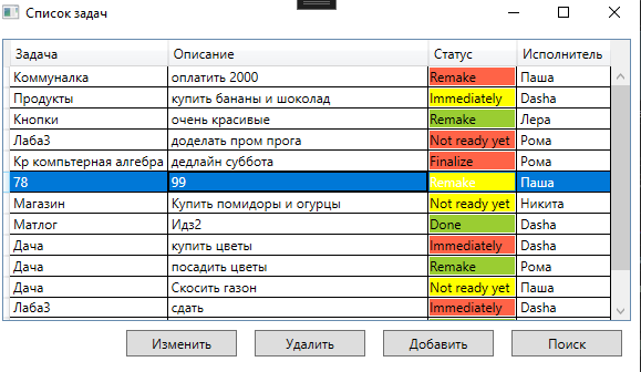 Кнопки изменить и удалить становятся доступными при выборе задачи:
