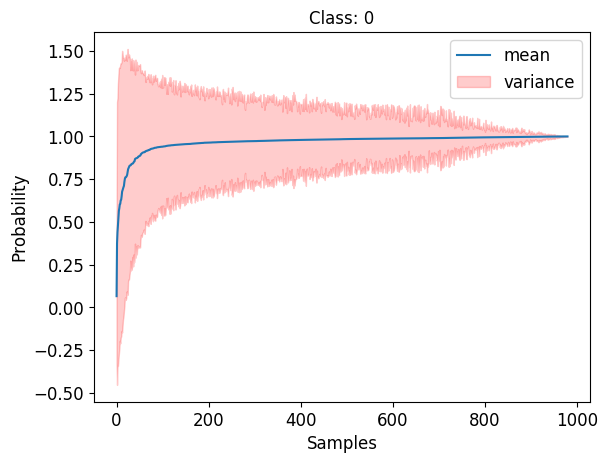 The following are examples of the variance associated with the probability of a prediction being correct for a specific class: