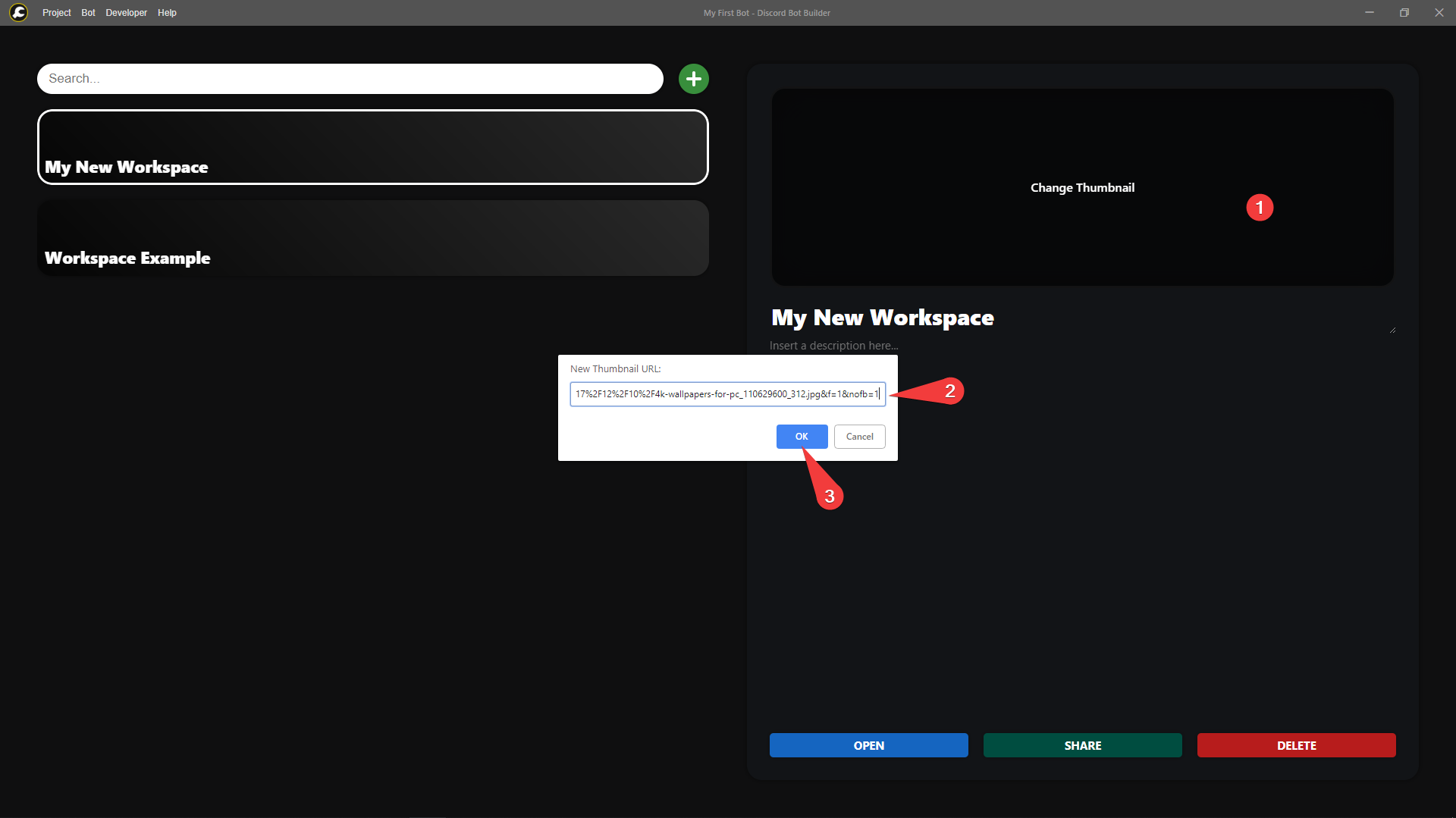 To customise the thumbnail of a workspace, hover over the empty grey space on the top right of the screen. Click on it, paste an image and hit enter or click OK. Boom! You're done.