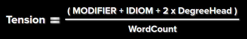 在文章中修飾用詞「形容詞、副詞 MODIFIER」、「成語、諺語 IDIOM」 與「程度中心語 DegreeHead (e.g., 很、非常)」能提高整個句子的情緒張力 Tension。
