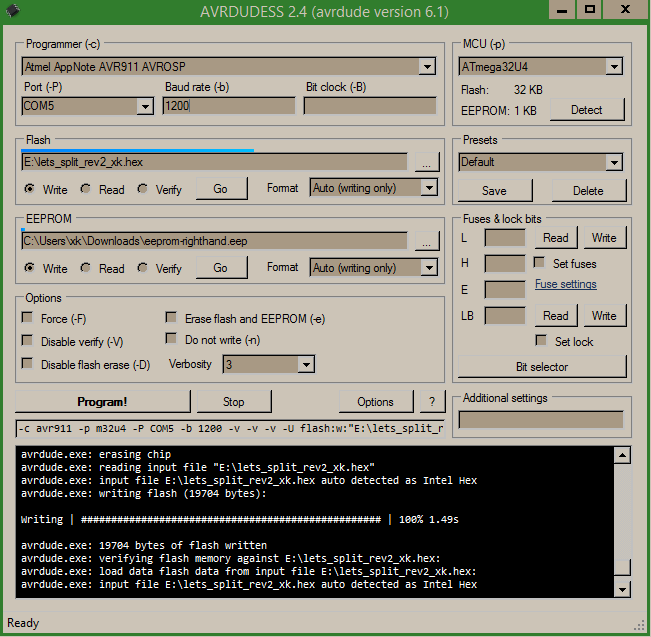 Congrats on correctly flashing your own Let’s Split, and hope this helps those out who are having trouble with programming their Let’s Splits like I did