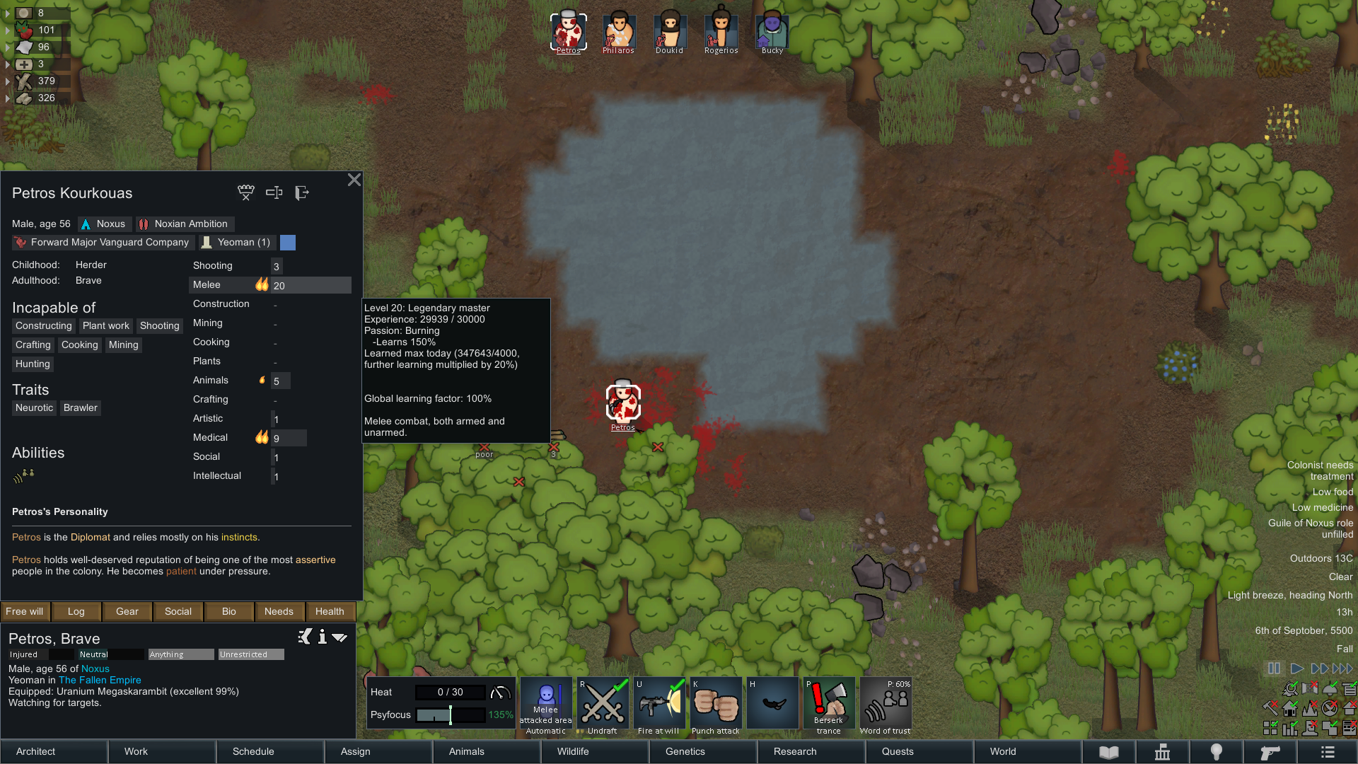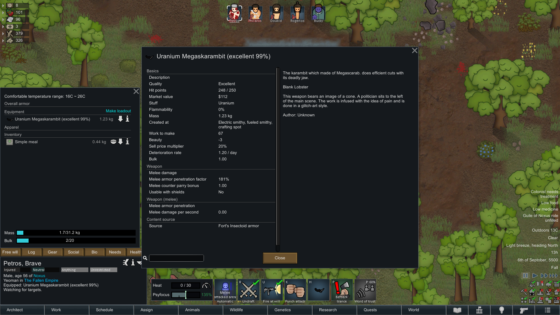 When I used a megascarambit knife to attack an enemy, my colonist just did nothing, but leveled up absurdly fast, and did no damage. I'm assuming what's going on is that he's doing an attack every frame, without dealing damage/hitting them.