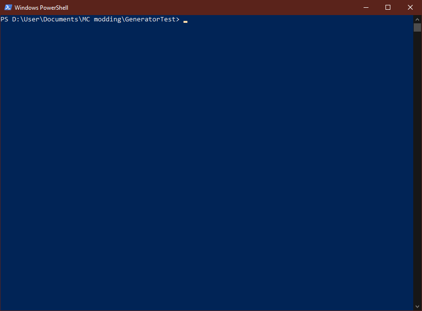 Once the bin directory has been added to your PATH, navigate to the folder where you would like to create a new project. Here, simply run GeneratorFabricMod: