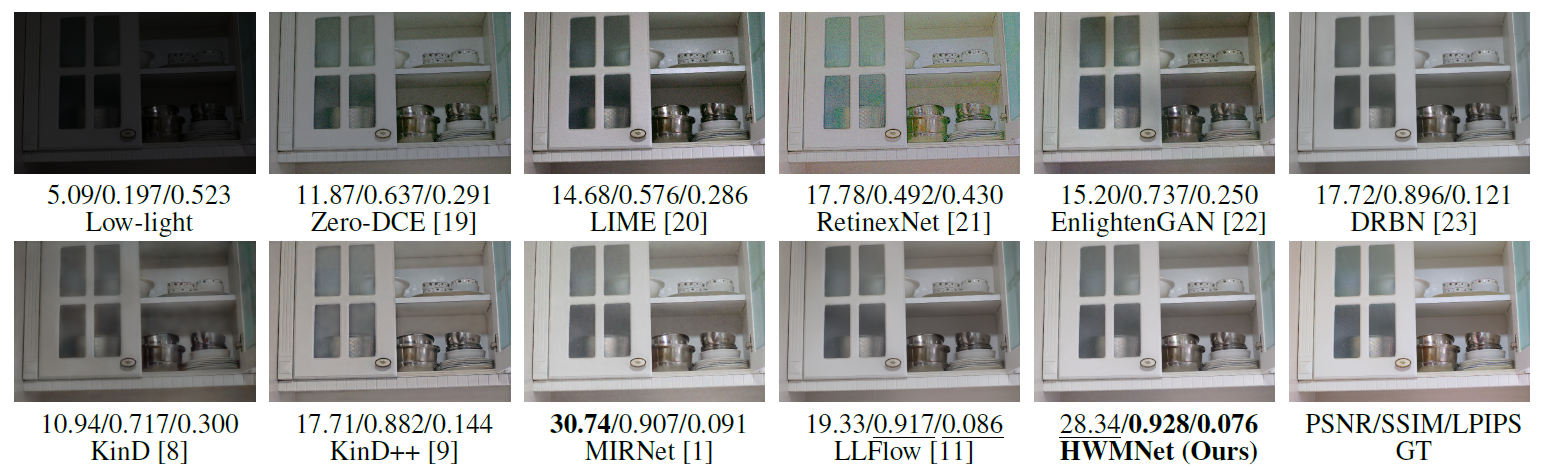 Abstract : Low-Light Image Enhancement is a compute vision task which reinforces the dark images to appropriate brightness. It can also be seen as an ill-posed problem in image restoration domain. With the success of deep neural networks, the convolutional neural networks surpass the traditional algorithm-based methods and become the mainstream in the computer vision area. To advance the performance of enhancement algorithms, we propose an image enhancement network (HWMNet) basing on an improved hierarchical architecture model: M-Net+. Specifically, we use a half wavelet attention block on M-Net+ to enrich the features of wavelet domain. Furthermore, our HWMNet has competitive performance results on two image enhancement datasets in terms of quantitative metrics and visual quality.
