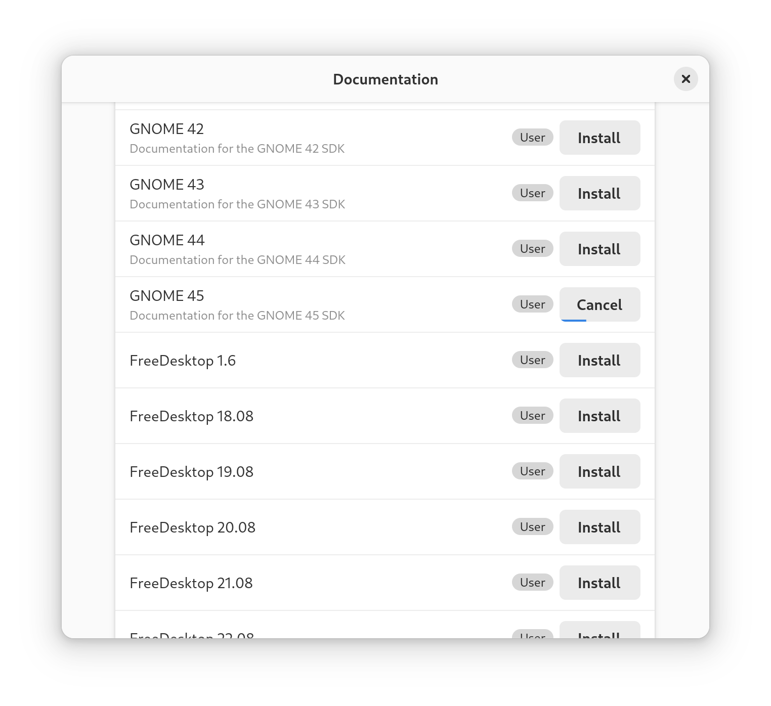 flatpak install --user flathub org.gnome.Sdk.Docs//45- GLib/GObject/Gio/etc