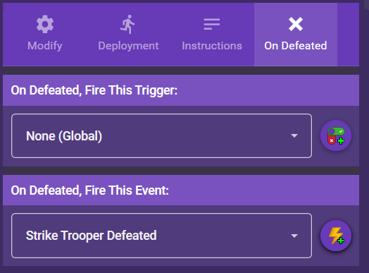 Select an existing trigger / event to fire when this group is defeated.