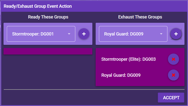 | Ready / Exhaust a Group | Readies / exhausts a group | |