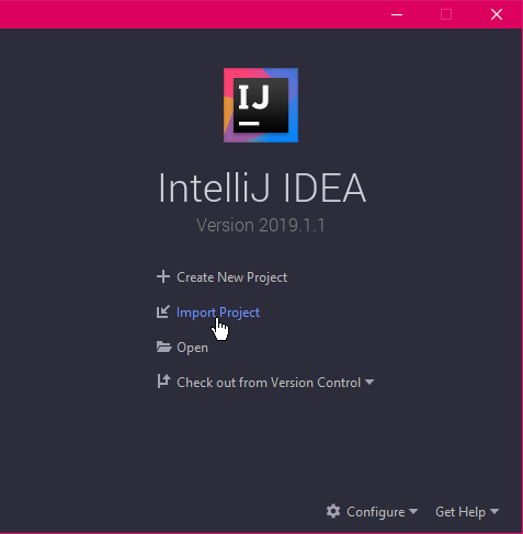 Once you start IntelliJ press Import Project