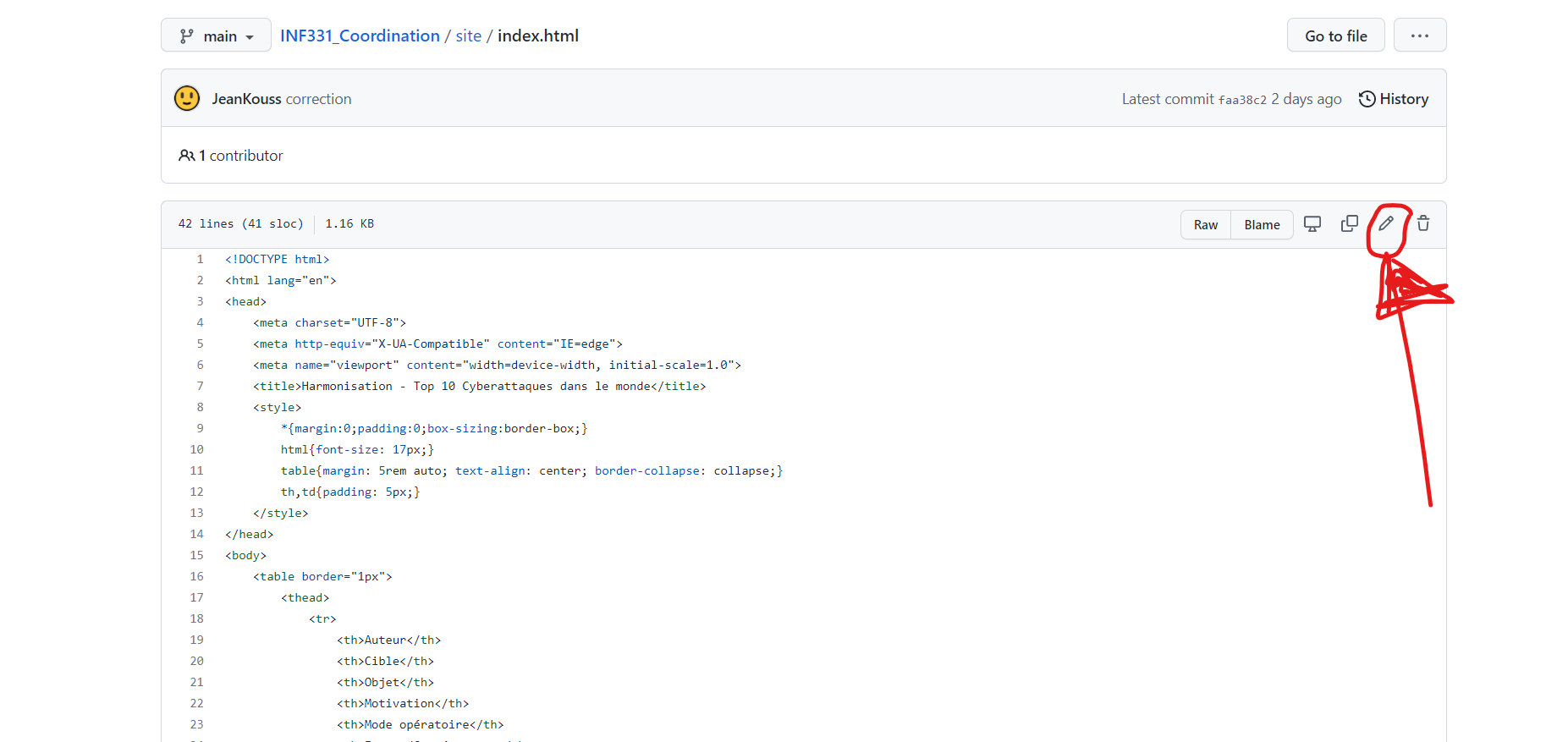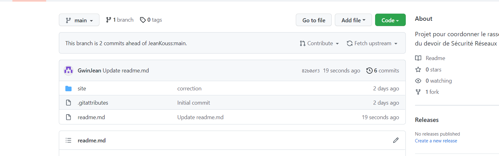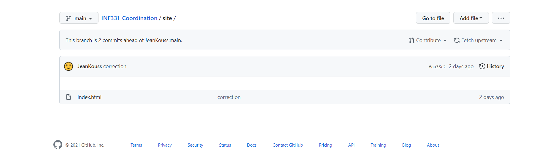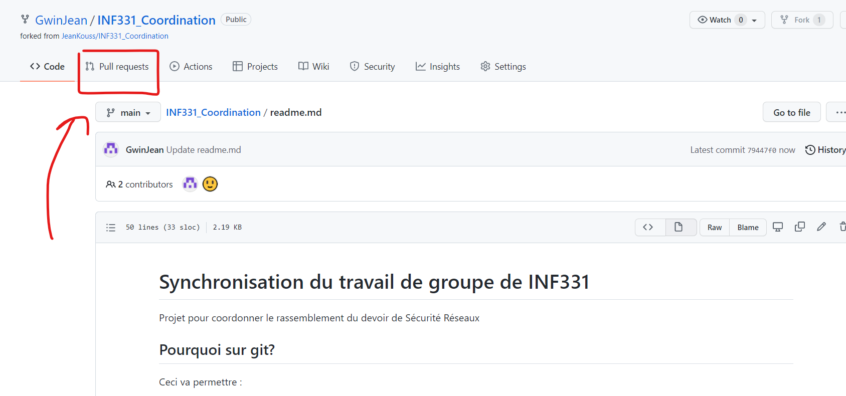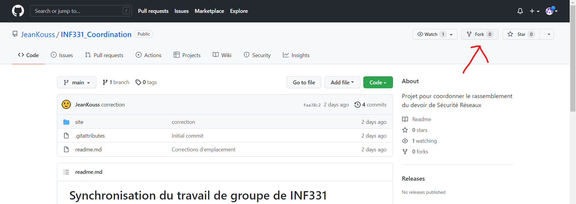 Une fois cela fait, vous devriez voir en haut à droite nomutilisateur/INF331_Coordination au lieu de JeanKouss/INF331_Coordination