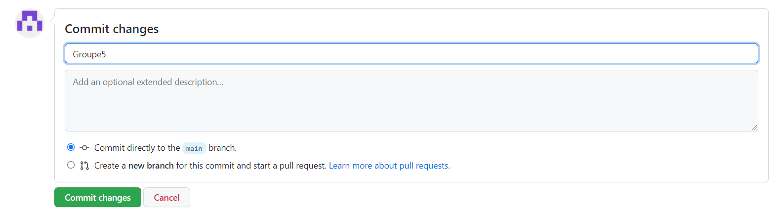 Après les modification, aller tout en bas de la section du code source et cliquer sur "commit changes"