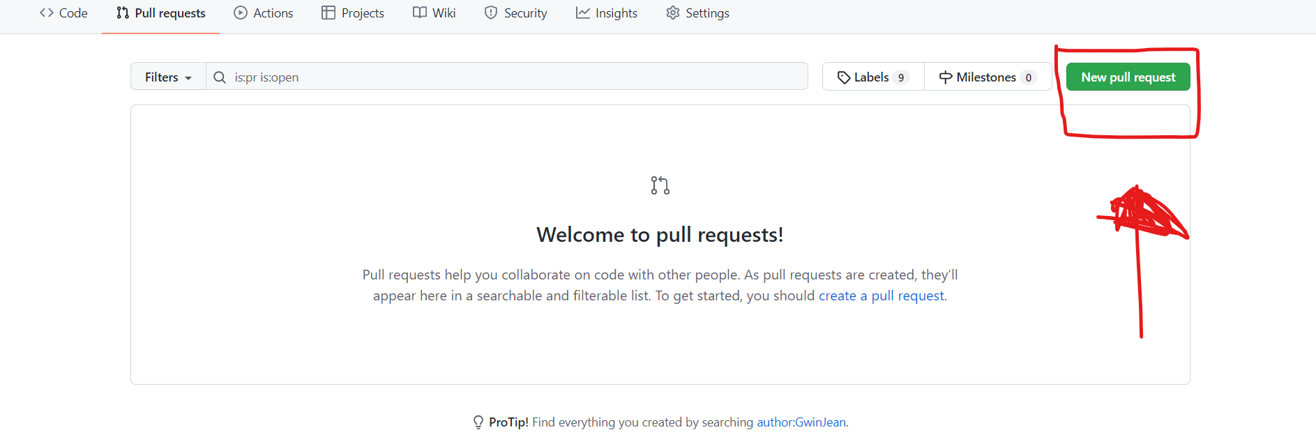 Cliquer sur "pull request" dans la barre de navigation du projet (tout en haut)