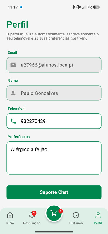 - 📅 Gestão de Entregas: Receção de notificações sobre o estado do pedido e a possibilidade de negociar/reagendar a data e hora de levantamento do cabaz em caso de impedimento.