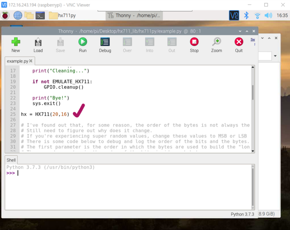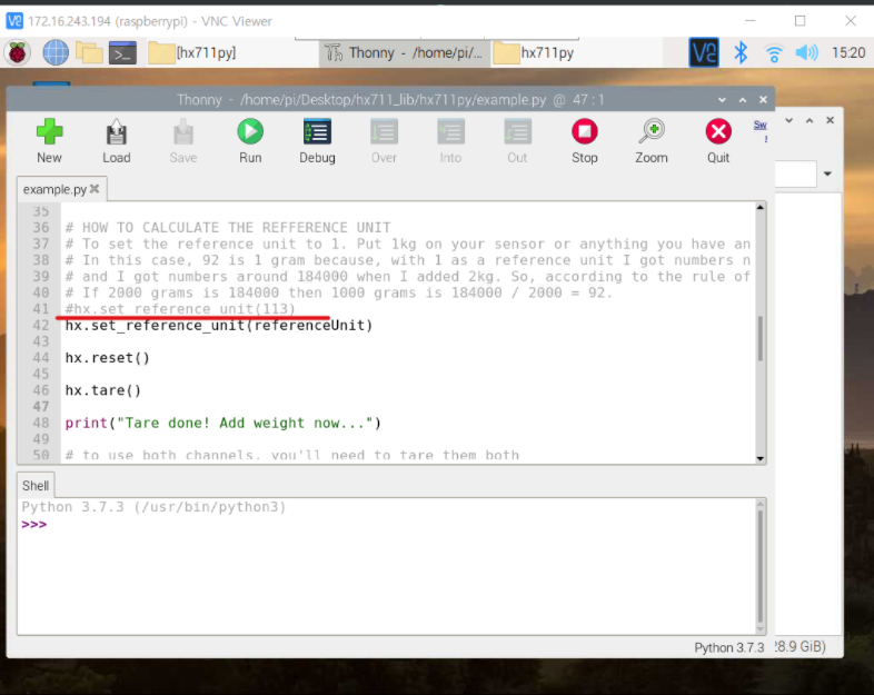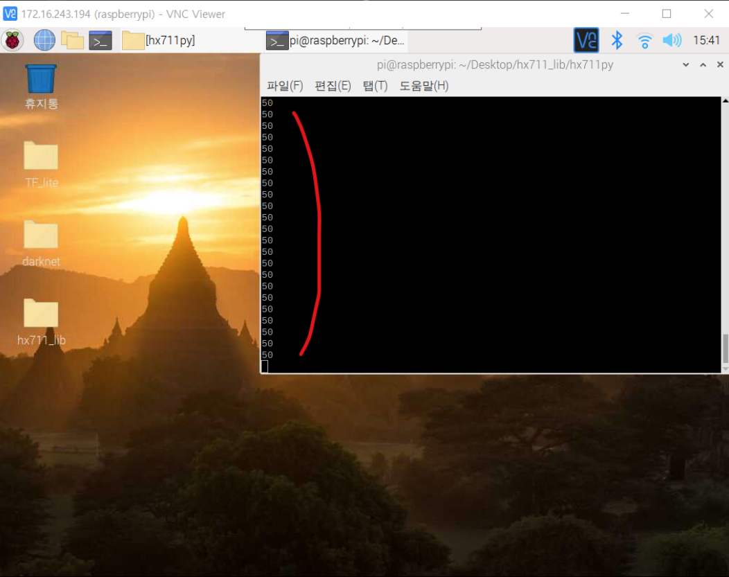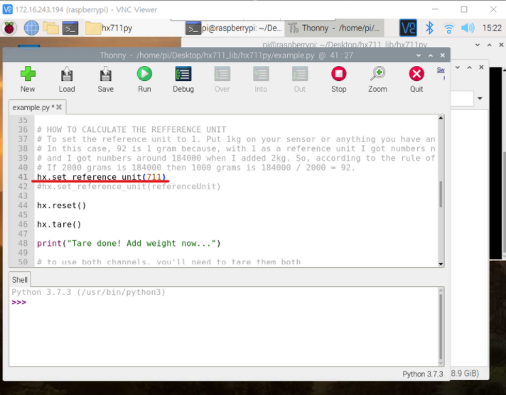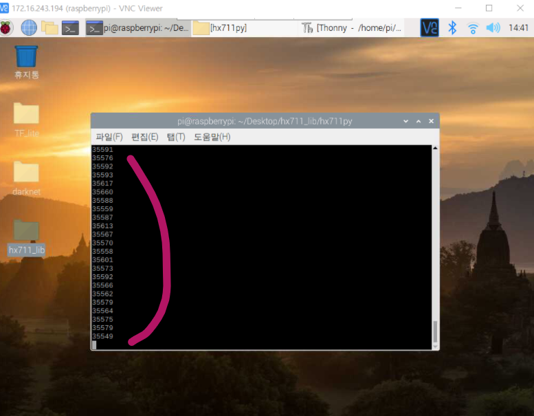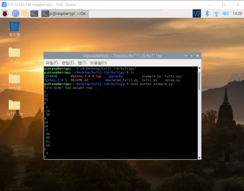 - 아래 코드로 무게 센서를 담당하는 파이썬 파일 실행