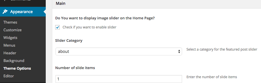 - specify the category "about" for the Slider Category