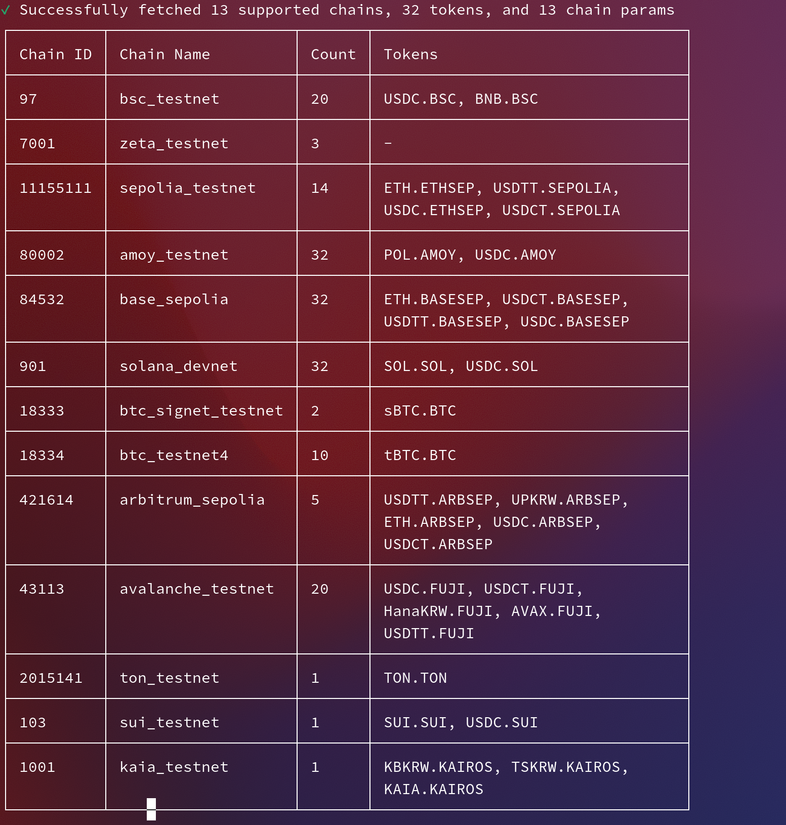 zetachain query chains list