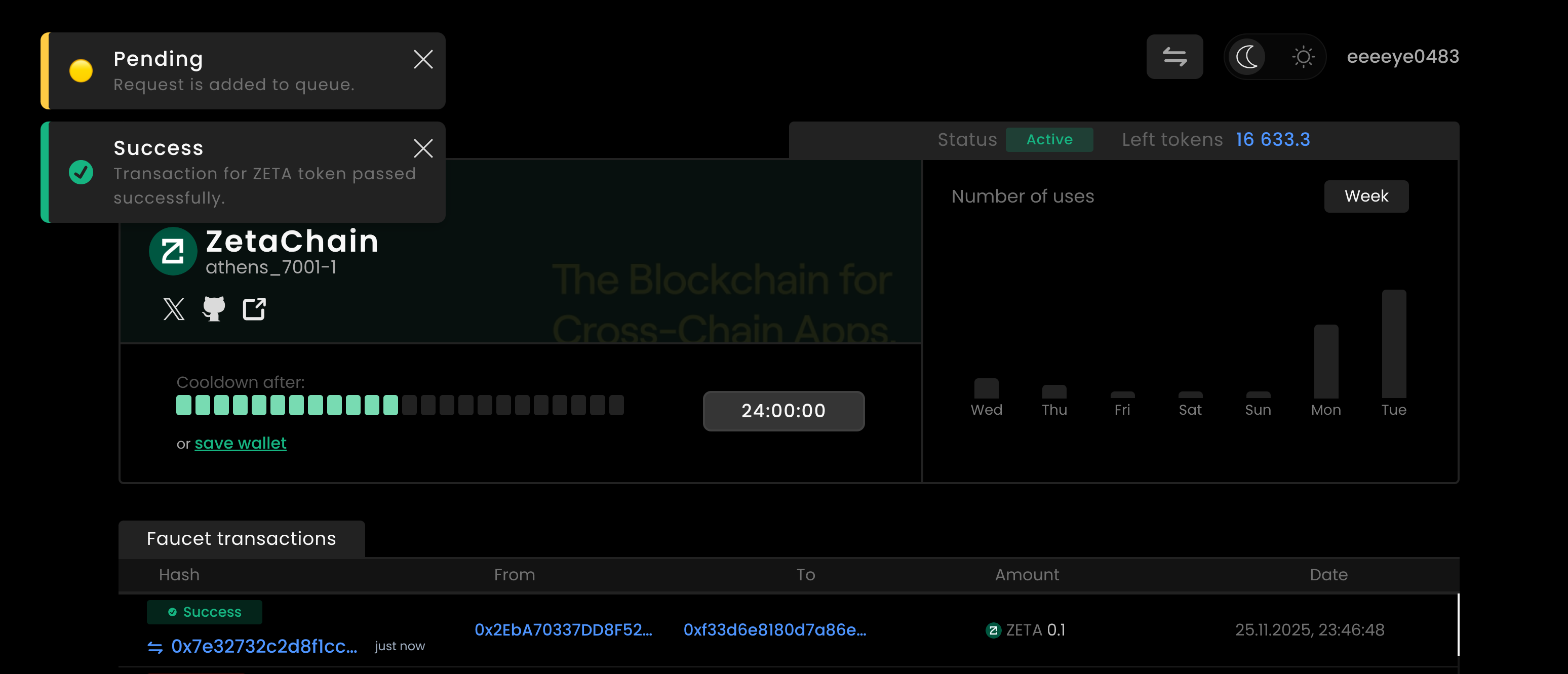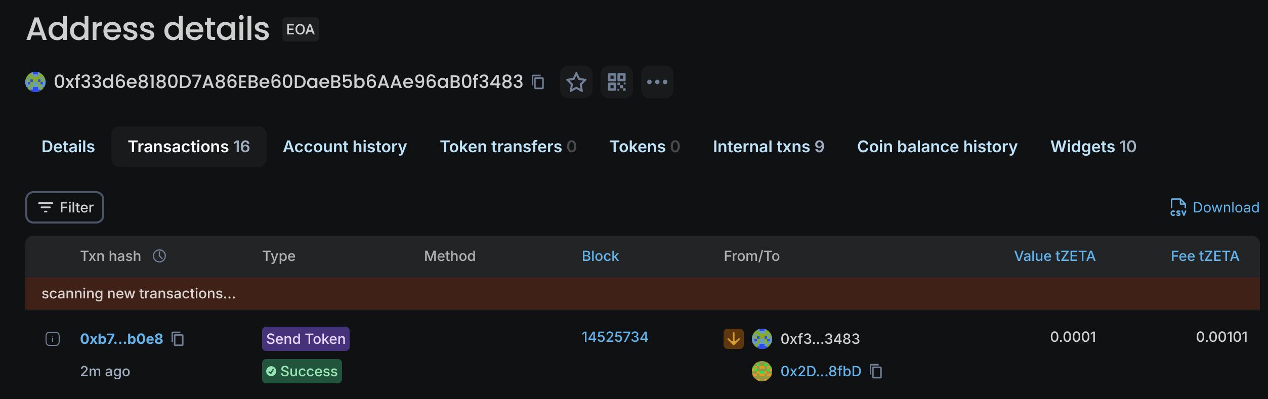 通过 ZRC-20 协议,合约在底层自动将我的 BTC 转换并结算到了目标的 ETH 地址上。