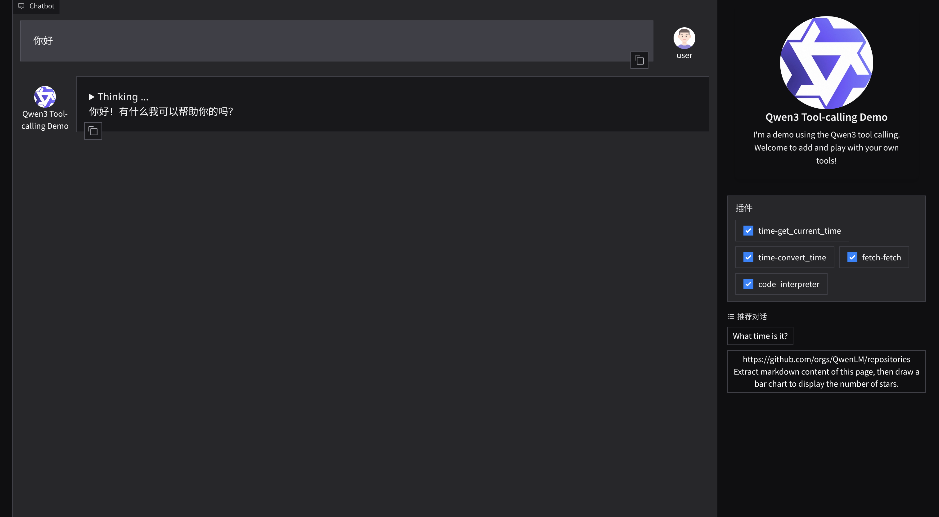 * AI: Qwen 的 react_agent (Reasoning + Acting) 模式。