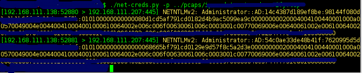 Thoroughly sniff passwords and hashes from an interface or pcap file. Concatenates fragmented packets and does not rely on ports for service identification.