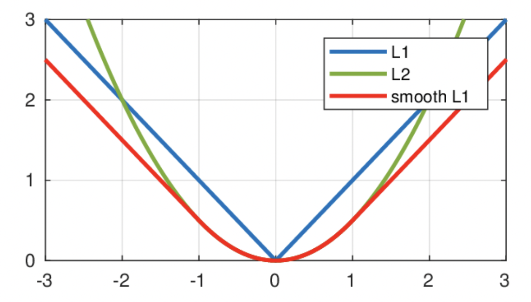 Figure 9: Loss Graphs: Blue is L1, Green is MSE, and red is smoothL1