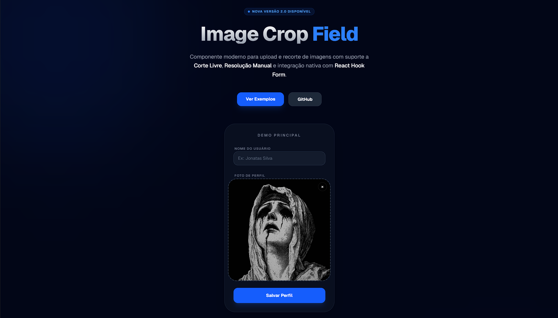 Componente de elite para upload e recorte de imagens, ultra-otimizado para o ecossistema moderno do React. Oferece uma experiência de usuário premium com suporte a Next.js 15, TypeScript, React Hook Form e processamento via Canvas API de alto desempenho.