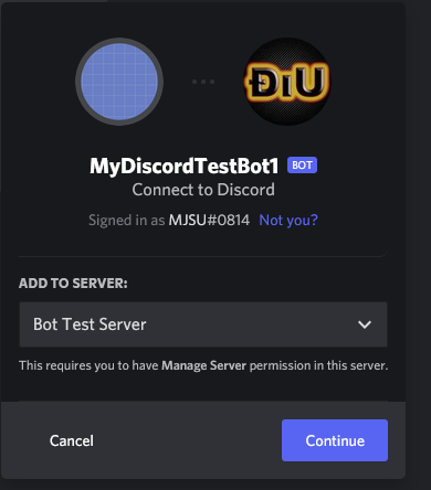Select which Discord Server you want to invite the bot into and continue and then authorize.