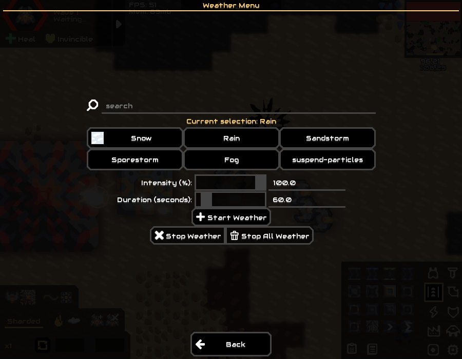 - Weather Menu: Start and stop weather