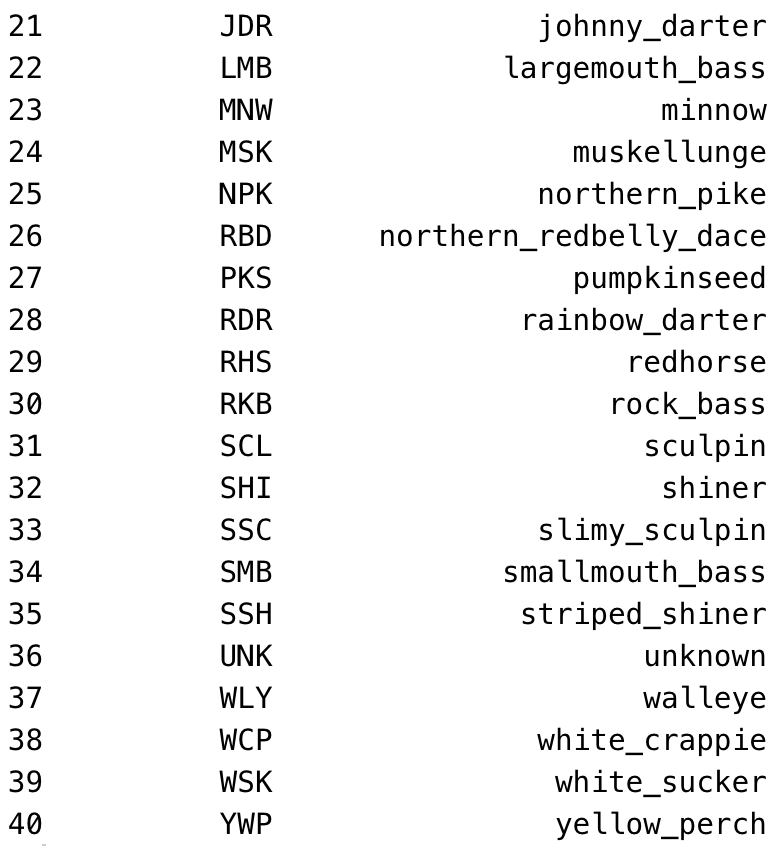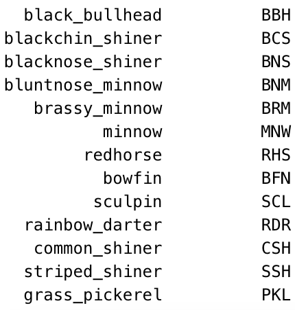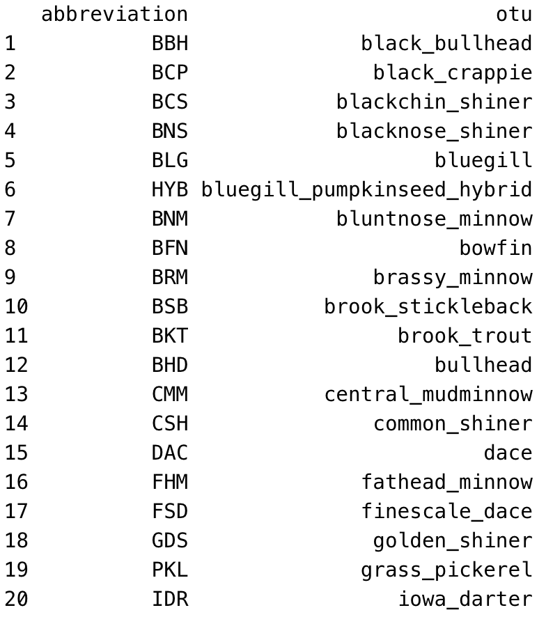 And here's a full list of the OTU fish abbreviations, in alphabetical order by common name/otu: