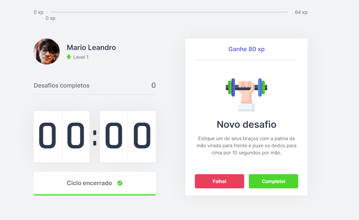 move.it is a project to help people to make more exercises. 🖼 Layouts 🌐 Deploy Website 👉 Website: https://move-it-ruddy.vercel.app/ 🛠 Technologies The following tools were used in the construction of the project: Next.js React TypeScript