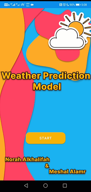 We've also developed an app on Android that gets the location input by the user, uses the Weatherstack API to get weather data for that location and displays them, then predicts whether it will rain tomorrow or not.