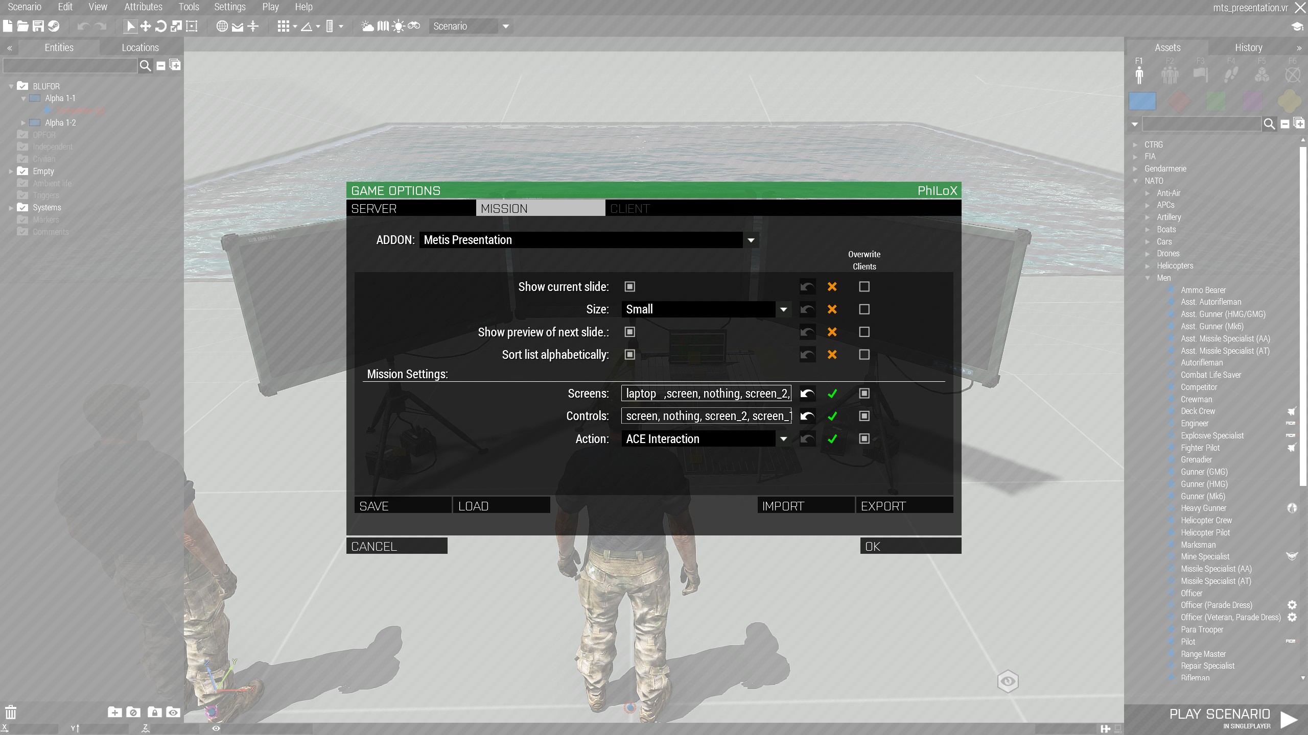 };- Open the presentation with the vanilla or ACE3 action