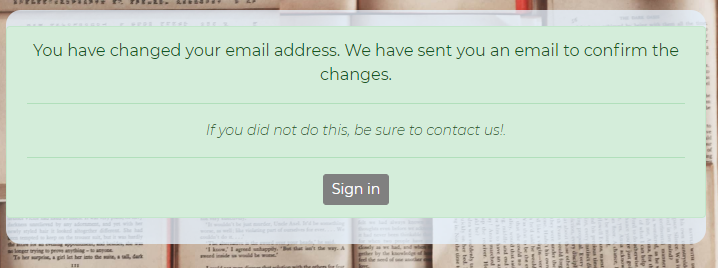 If you succeeded in successfully changing the password or email, then you will receive a success message.