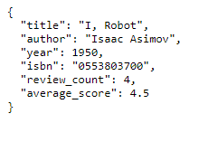 If you specify an invalid isbn, you will receive an error in the form of JSON and a 404 code for the browser.