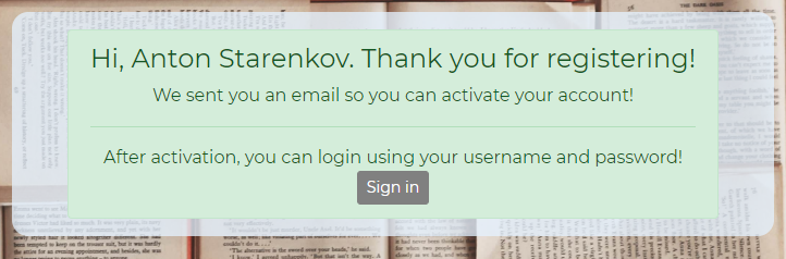 If the user tries to enter the site without confirming the mailbox, the application will not allow this, and the sign in form will offer to re-send the letter.