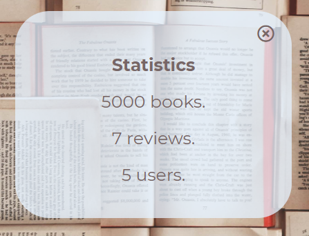 You will see a window with general statistics showing the number of books, reviews and registered users.
