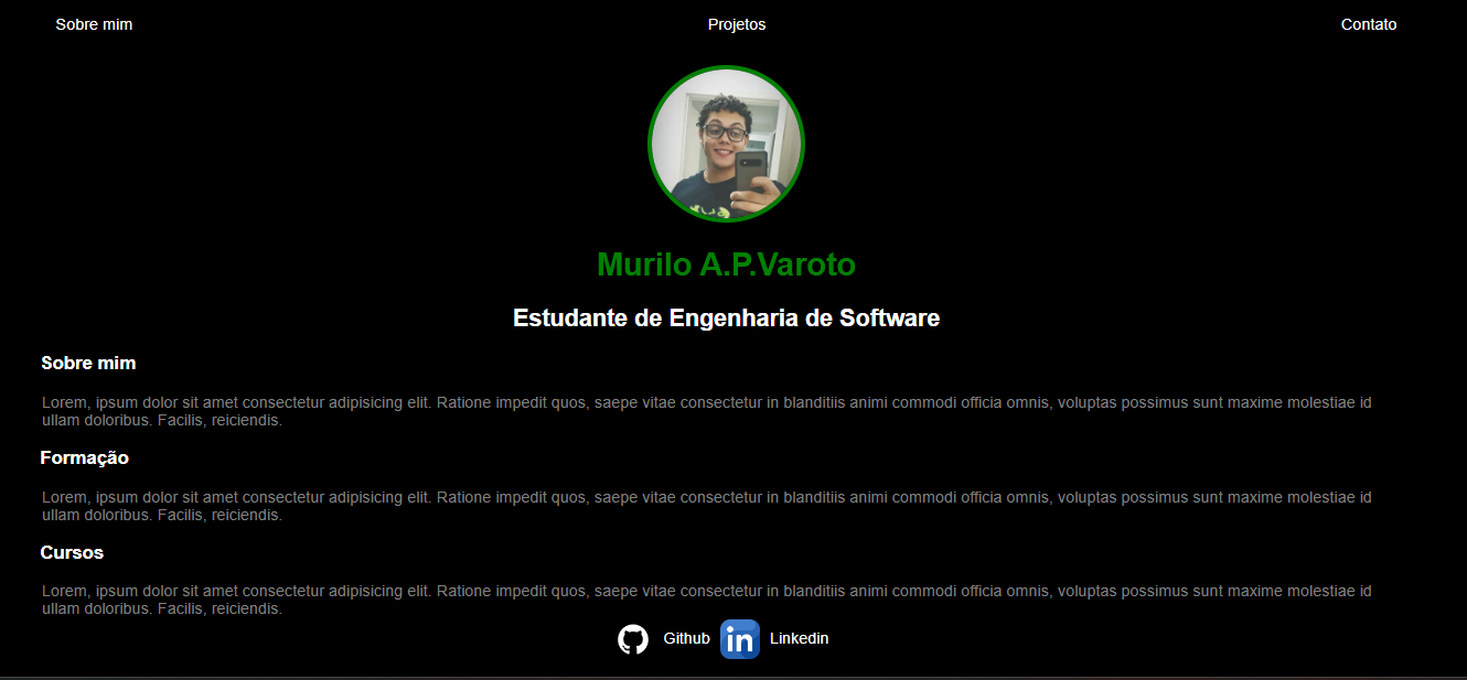 Sobre mim - About me Pagina html e css basica, desenvolvida com base no conteúdo da Adriana Saty. Código foi desenvolvido com o fim de aprimoramento das minhas habilidades de desenvolvimento web
