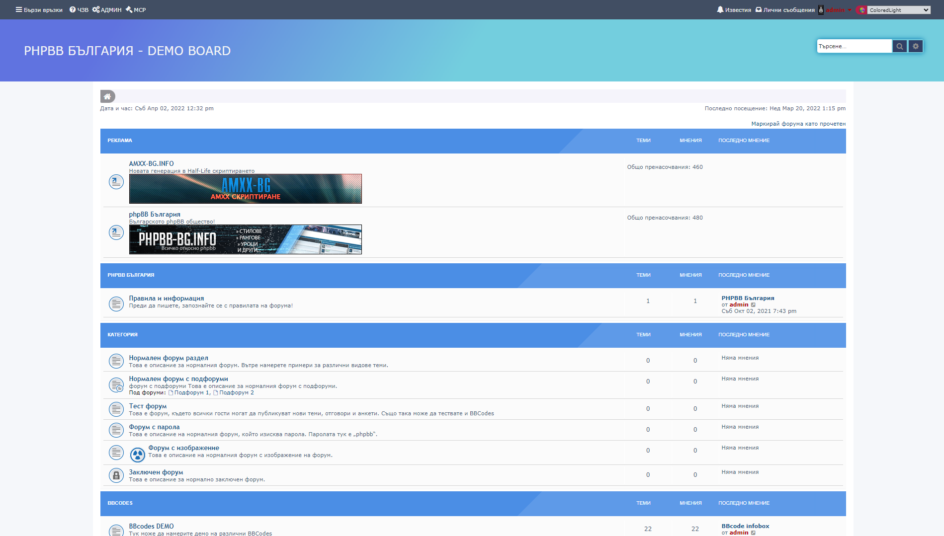 ColoredLightfolder to your phpBB forum'sstylesdirectory. - Activate the style from the Admin Control Panel under the "Styles" menu.