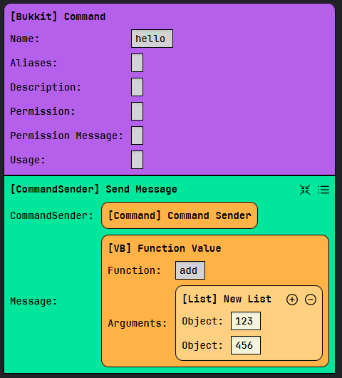 The Function block works the same way except the [VB] Function Return block is used to return a value.
