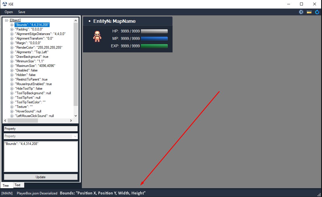 Bounds, Padding, AlignmentEdgesDistance, Alignment trasform, Margin, RenderColor, Aligment, Disabled, Hidden, Texture.